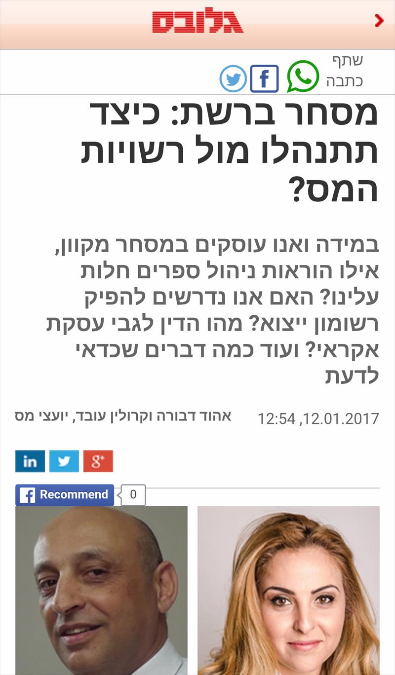 מילות מפתח: מיסוי מקרקעין , הצהרת הון , פריסת מס שבח , יועצת מס , מס רכישה , דו"ח שנתי , מס שבח , עוסק מורשה , נדל"ן