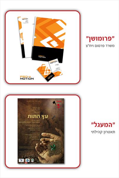 מילות מפתח: באנר , גרפיקהעיצוב קטלוגים , לוגו מיתוג ותדמית , מצגות תדמית , עיצוב אריזות , פליירים ומודעות , פוסטרים וכריכות , חוברות וקטלוג , כרטיסי ביקור וניירת , אתרי אינטרנט