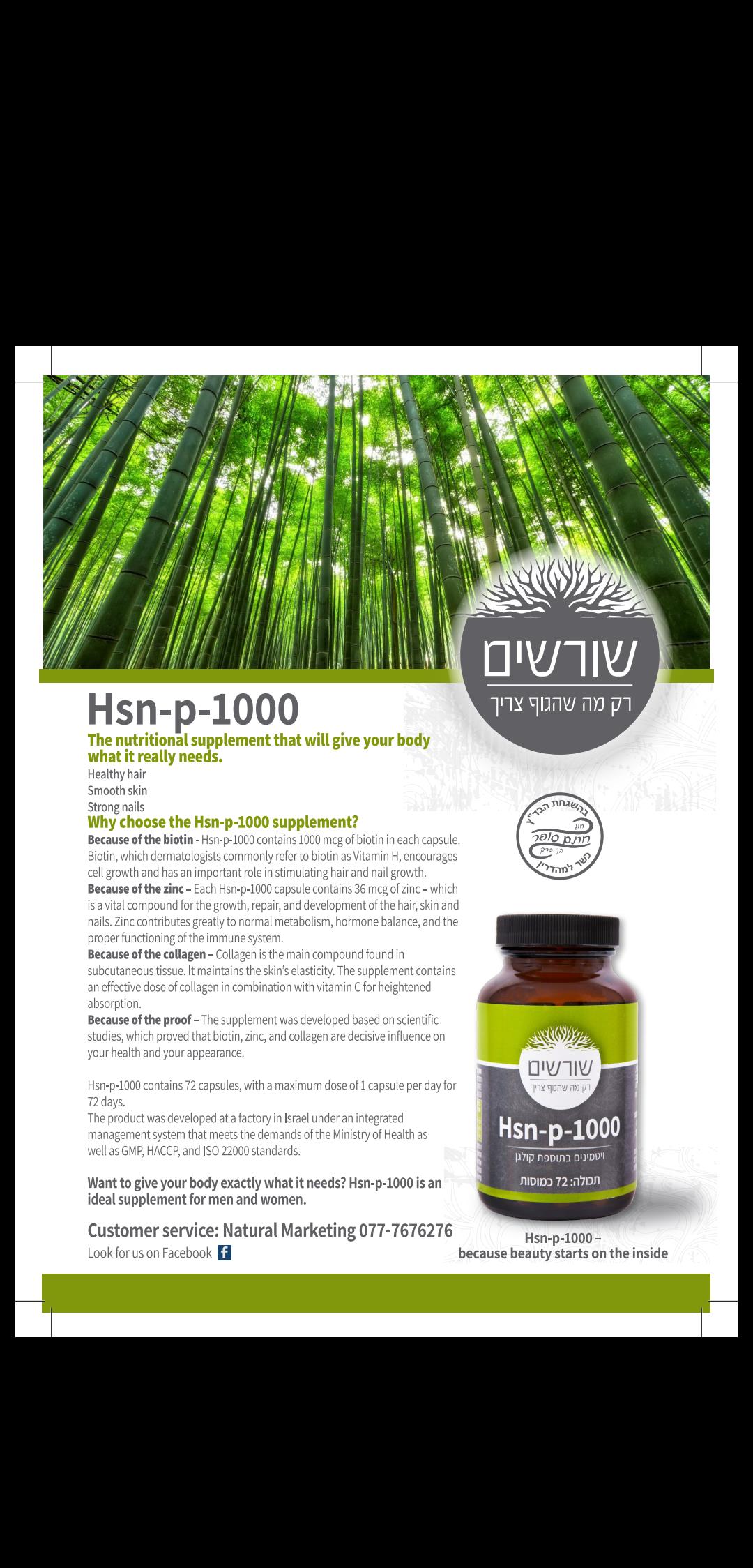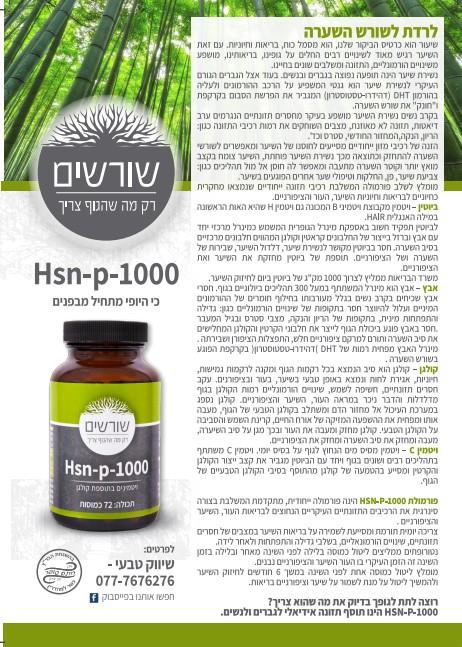 מילות מפתח: קולגן , נשירת שיער , תוספי תזונה , תוספי מזון , hsn-p-1000 , ויטמינים , עור אלסטי , חיזוק צפרניים , hsn
