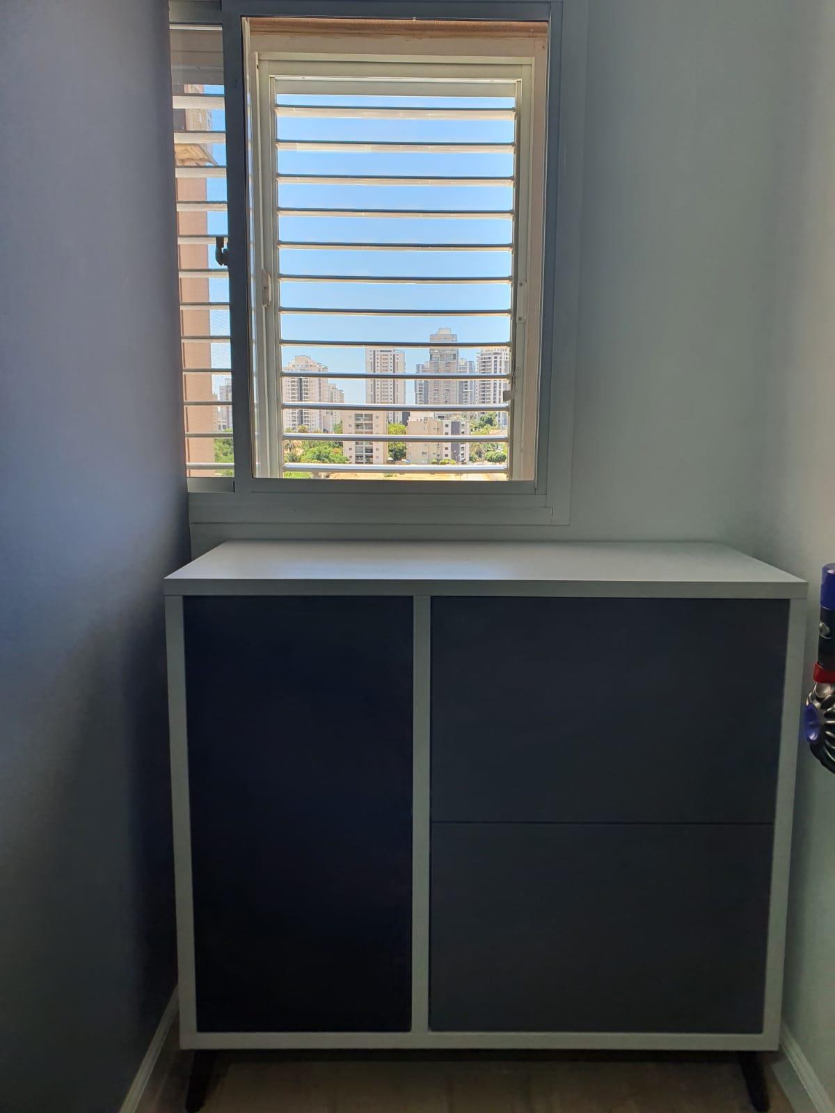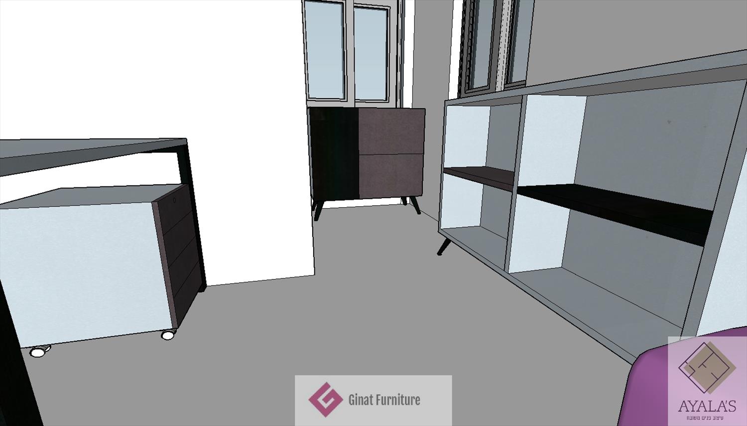 תכנתי 2 עמדות עבודה שיהיו מספיק נוחות לשתיהן 2 ארוניות לאחסון במידות מותאמות למסדרון הקטן שבחדר. אחרי בחירת צבעי נגרות ובקשתן